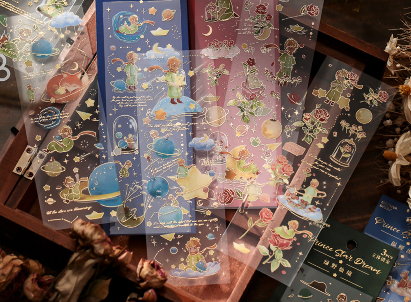 Crafted from high-quality PVC, these stickers feature elegant gold foil accents and a 3D textured finish that stays perfectly flat for smooth application. Whether you’re decorating journals, planners, or scrapbooks, these stunning designs add a touch of celestial magic to every page.